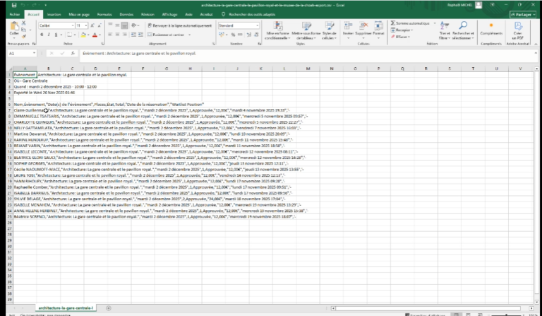 Événements Exporter les inscrits à un évènement en CSV, importer le fichier sur Excel Lire la suite »